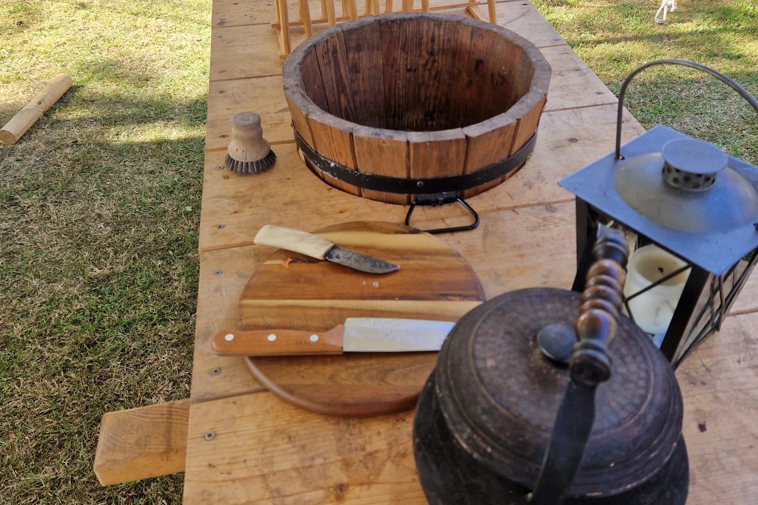 - 1 Wasserkessel (ähnlich Teekessel oder kleiner Kupferkessel mit/ohne Deckel)