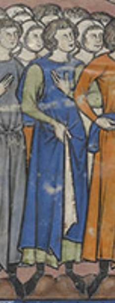 Ich hatte glücklicherweise bei vorigen Recherchen zu Kleidungsstücken bereits einiges an Bildmaterial gesichtet, vor allem die Kreuzfahrerbibel ist hier eine sehr schöne Quelle.